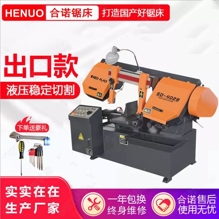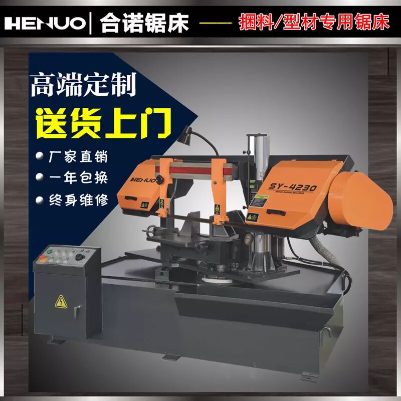 公司开发的“合诺”系列数控自动,半自动;立式、卧式锯床具有科技含量高、节能高效、结构合理、质量稳定等特点。特别是本公司的精品,如数控智能高速带锯床、高效锯切模具专用带锯床、平衡龙门式带锯床,其性能远超国内同类产品,有些关键设计还超过国外同类产品。本公司生产的锯床广泛用于黑色、有色金属、塑料、及非金属锯切,产品畅销国内外。